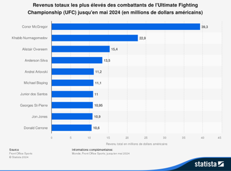 Revenus des combattants UFC jusqu’en mai 2024. Statista