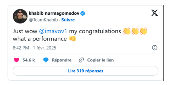 La victoire de Nassourdine Imavov face à Israel Adesanya est bien plus qu’un simple succès sportif. Elle symbolise la montée en puissance du MMA français sur la scène internationale. Longtemps considéré comme un outsider, Imanov a prouvé qu’il était désormais un incontournable de sa catégorie avec ces cinq dernières années, tous les défis relevés et les obstacles franchis. Victoire ou défaite, il n’a cessé d’avancer et de retourner à l’entraînement. Inlassablement et inexorablement. Son exploit a été salué par le public présent à l’Arena, mais aussi par des millions de téléspectateurs à travers le monde.
